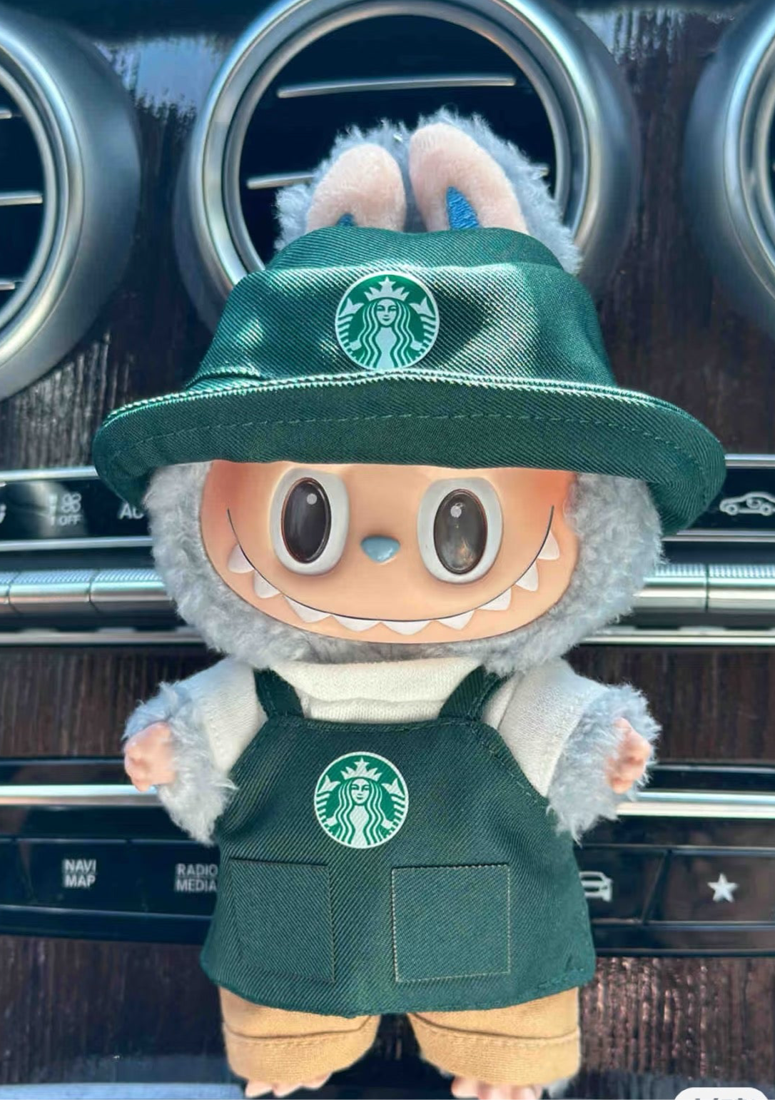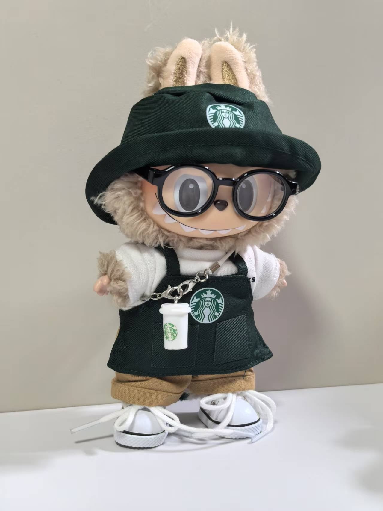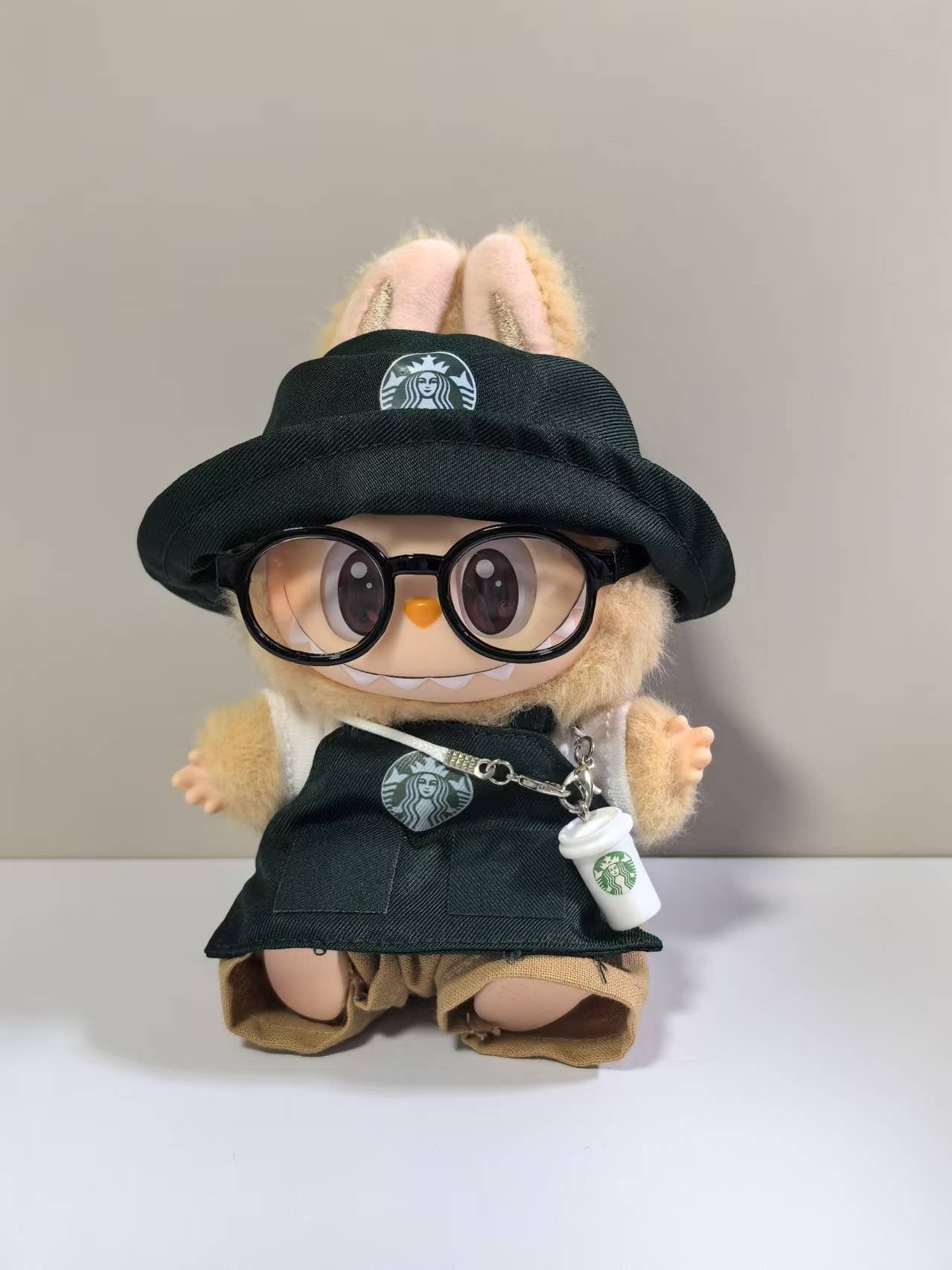 Labubu Barista Outfit Green| Starbucks Inspired | Bucket Hat, Apron, T-shirt,pants, glasses, Coffee | Perfect Gift|Labubu Barista Outfit Green| Starbucks Inspired | Bucket Hat, Apron, T-shirt,pants, glasses, Coffee | Perfect Gift| Kids and Teenager Gift