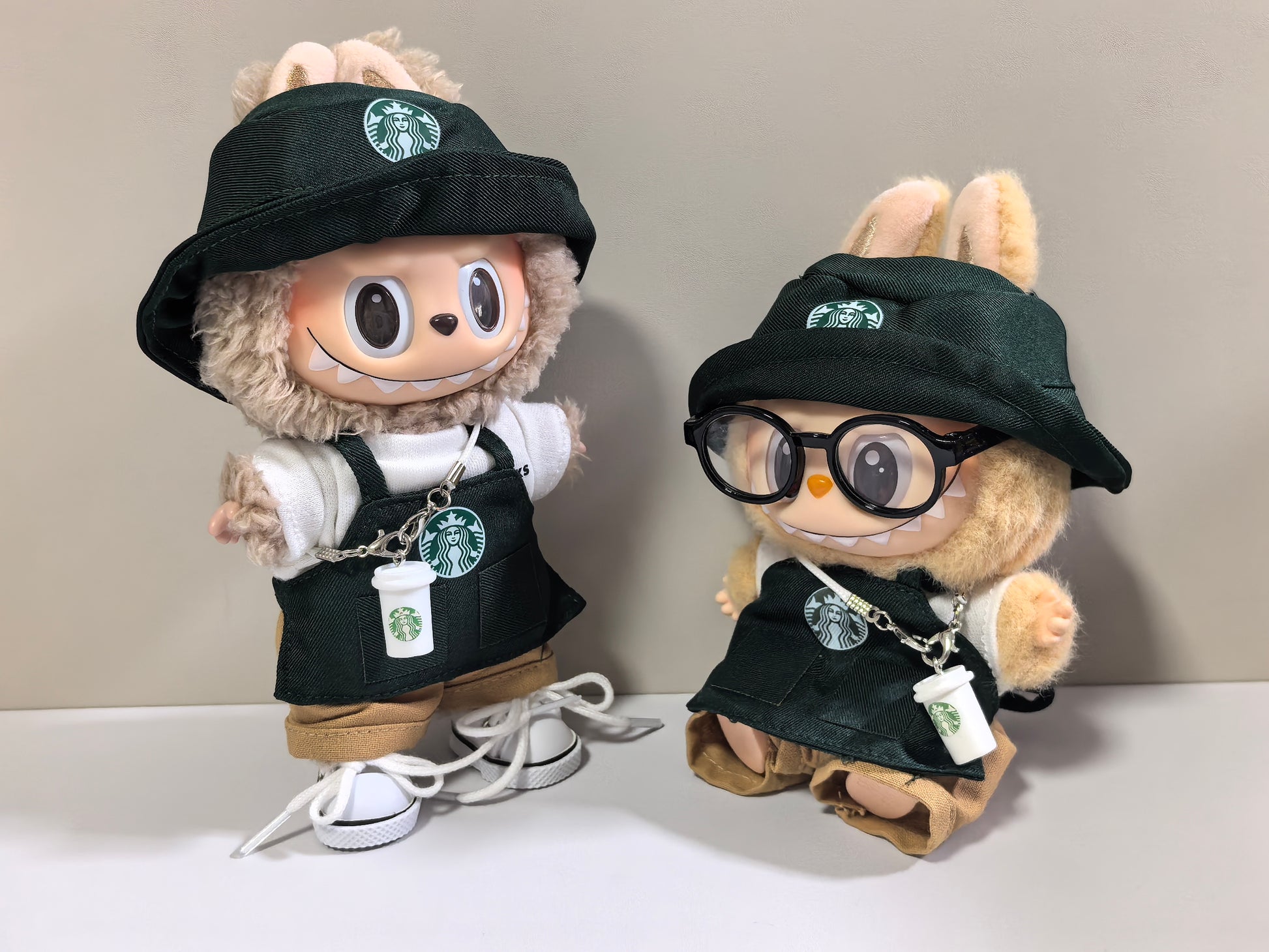 Turn your Labubu into the cutest barista in town with this Starbucks-inspired Coffee Shop Employee Outfit! This detailed set includes everything your little coffee shop worker needs—complete with a bucket hat, apron, casual uniform pieces, and even accessories like a mini camera and coffee cup. Perfect for display or imaginative play, this outfit is a must-have for fans of cozy café vibes.