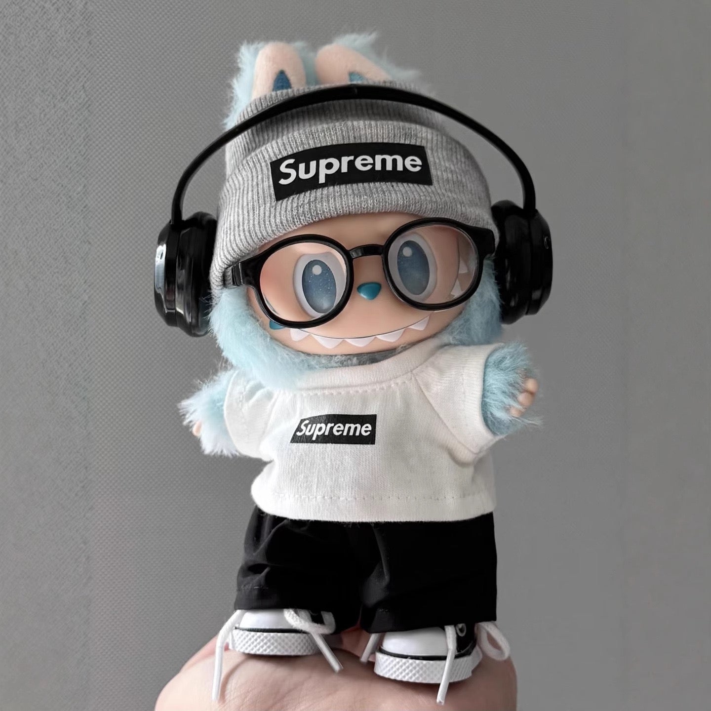 Labubu Supreme Outfit|Tshirt,beanie,pants,sneakers,glasses,headphone|Perfect Gift |Emotional Support Plush Accessory