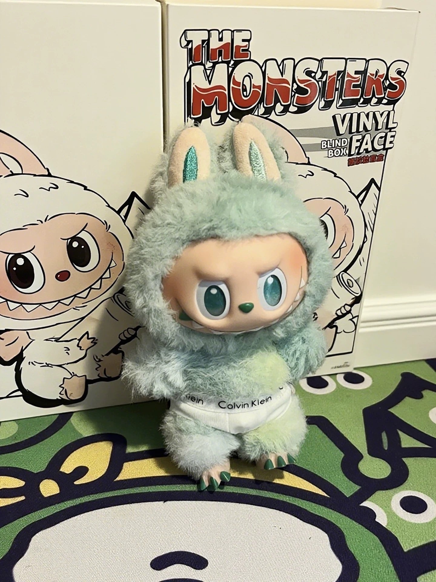 - Mini CK-inspired underwear designed specifically for Labubu plush dolls