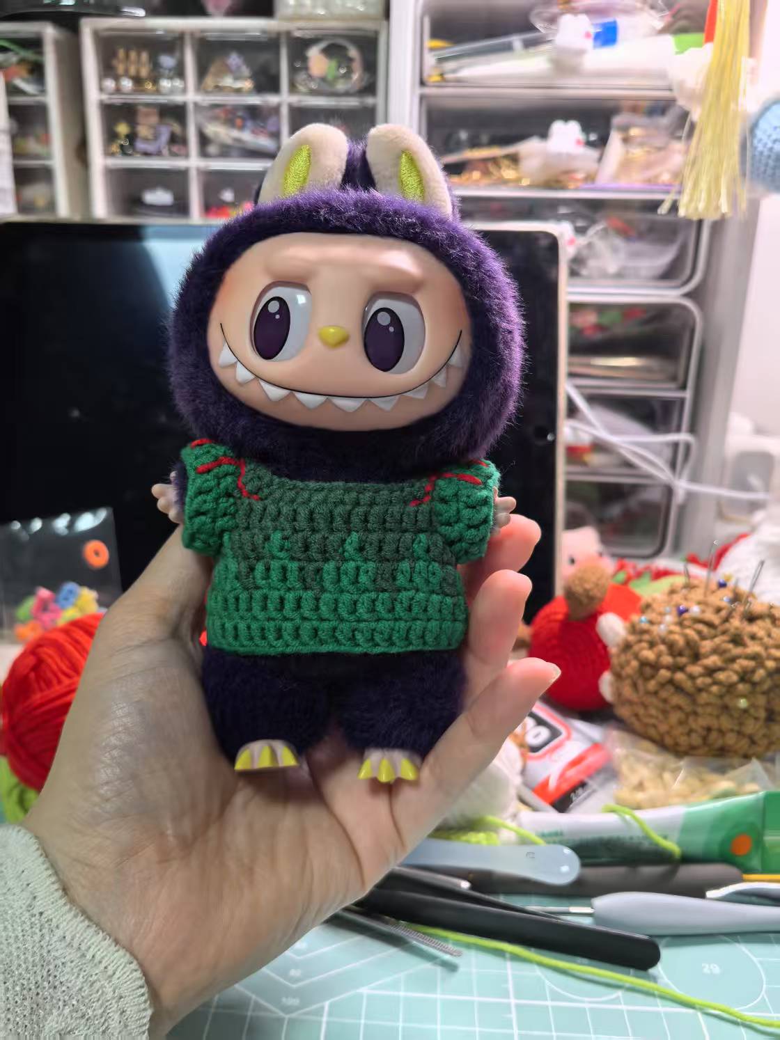 This listing is for the crochet jersey only. Labubu plush is not included.